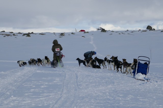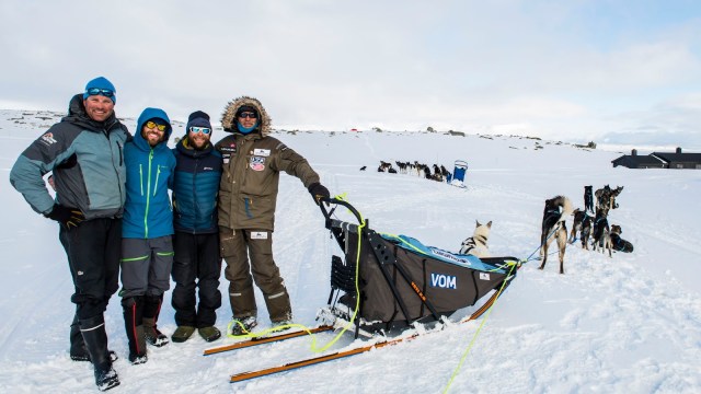 Today we had the joy of meeting the renound dog sled racer Robert Sørlie. Robert is one of Norway’s most decorated dog sled racer and is the only non-American that has won the Iditarod race in Alaska. He and his friend, Henrik Wessel, arrived while we were sitting outside in the sun at Sandhaug lodge. They were here only for a short brake, but we had a long nice chat with them before they left again.