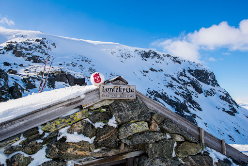 After staying for some days at Skarvereiret, grounded by the weather, we continued our journey over Hallingskarvet. Our next camp is at a new cool cabin, Lordehytta (Lords hut), built in 1880 by the eccentric lord Garvagh. It was originally built as a hunting cabin and was the finest one amongst the other cabins that he built. Nowadays the cabin (or hut), is used as an emergency shelter since it’s so primitive. We like such primitive living arrangements, so for us it’s a cool place to stay for some days.
