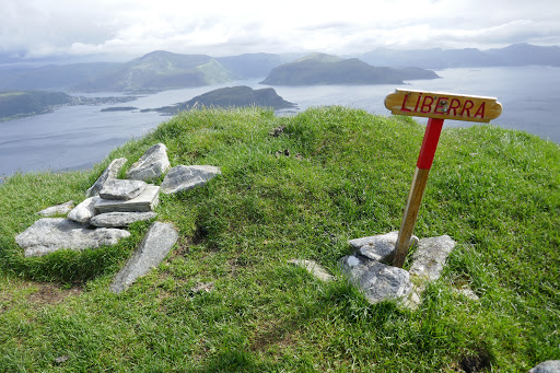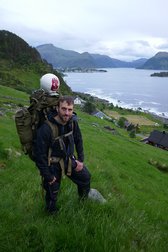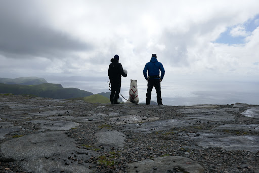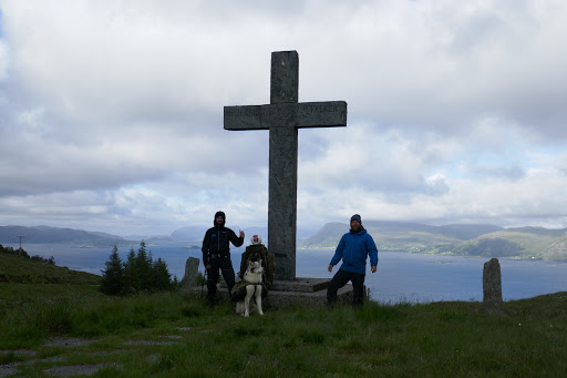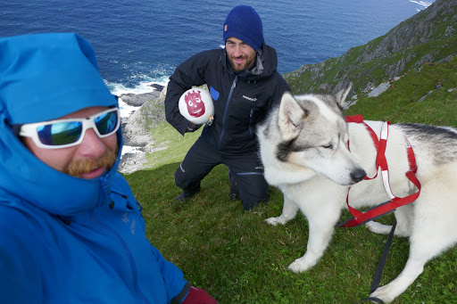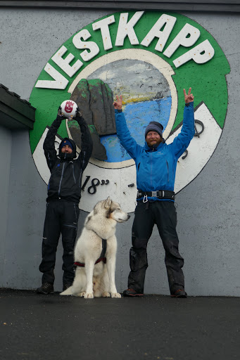 West Cape is finally conquered, which means that we now have been to twoout of the foreextreme points in Norway! The hike to West Cape from Selje is beautiful, but also very long. It’s took us over 12 hours to walk the 30 kilometers to the Cape from Selje. We arrived 3 o’clock at night in full storm. The wind was blowing so hard that we could not pitch the tent on the rocky ground. So we had to improvise and broke inn to a storage shed belonging to a closed down tourist center. The shed was the perfect size for two sleeping bags and a dog. I remained outside to watch the weather.