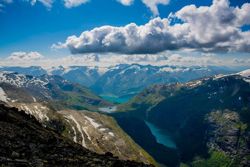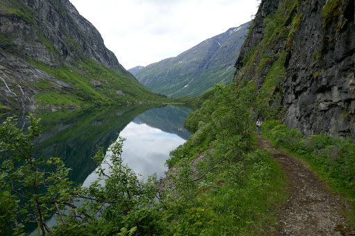 All around Hellesylt there are plenty of great hiking opportunities, both challenging and easy. One of the easiest hiking opportunities here is Flofjellet mountain pass. Not only is it the easiest, it’s also great in terms of scenery and nature. The work on the road throughthe mountain pass was started in 1887 and when it opened it served as an important rout for transporting goods, livestockand tourists. The road has never been upgraded after it first was made and it has steadily been degrading over the years. But it is a perfect place to go for a short or longer walk and it is almost completely flat.