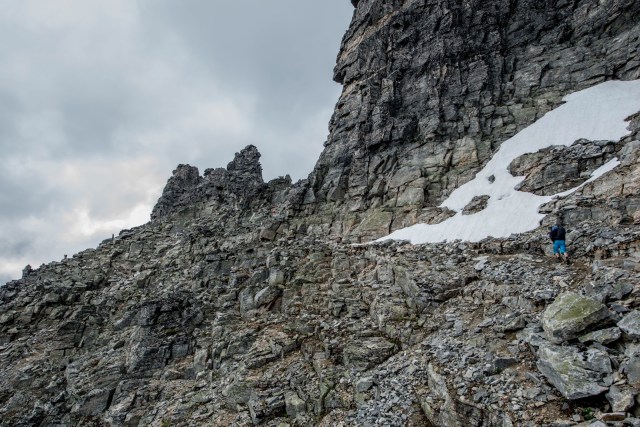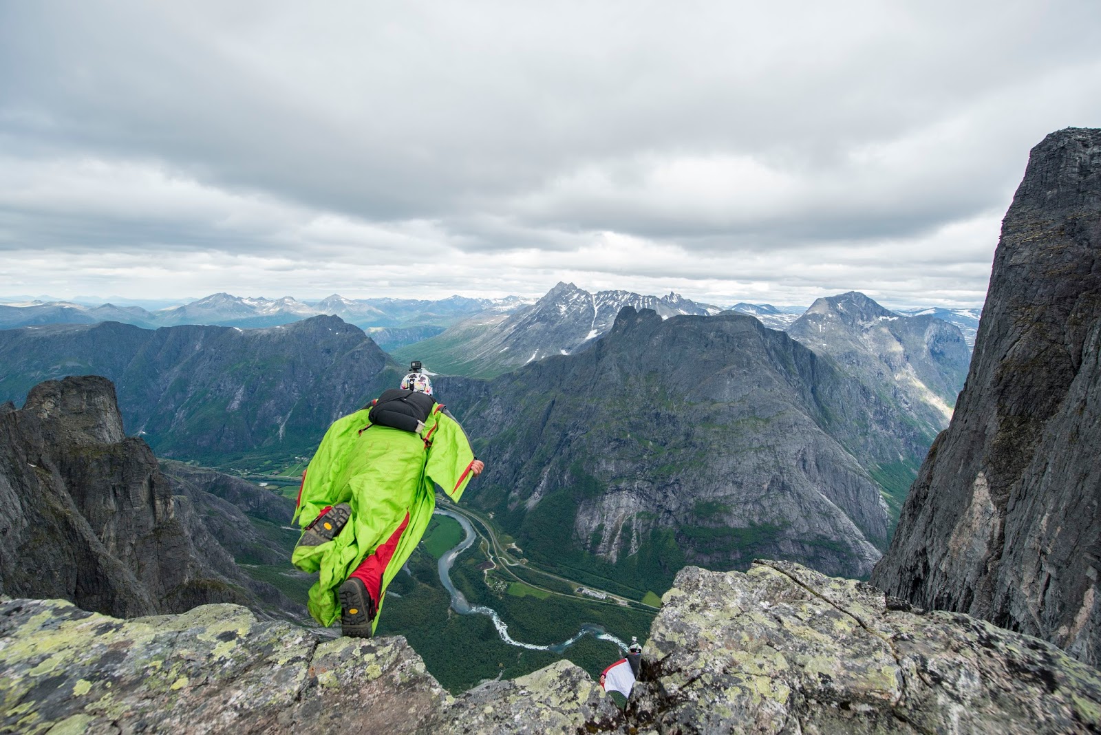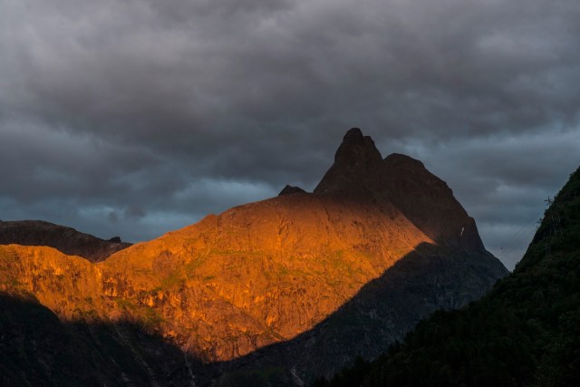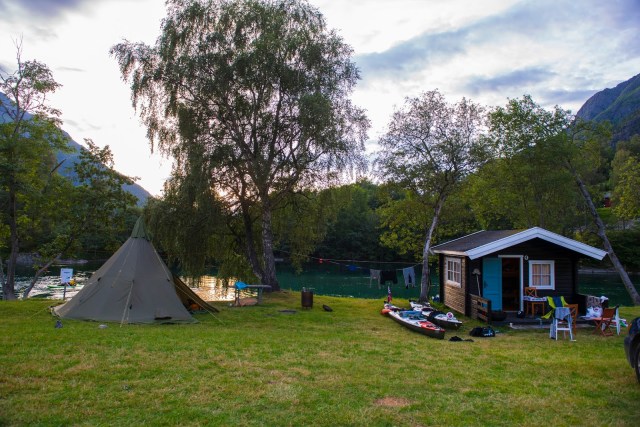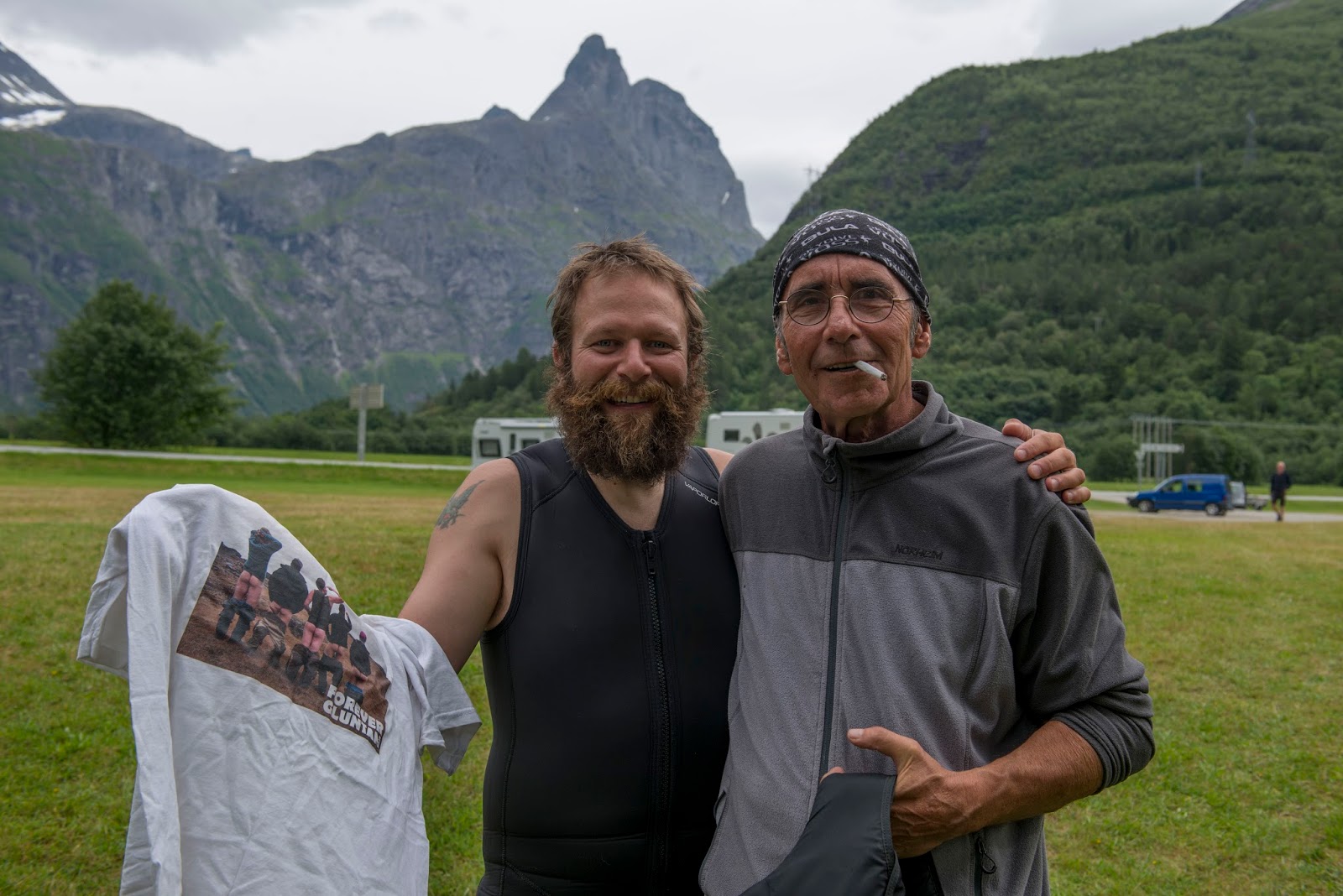 Yes! We are finally here! Romsdalen! Another idyllic and fairytale like place. We will stay at Soggebru camping for over a week and use this as base for further exploration of the mountains and valleys around here. Romsdalen is a Mecca for BASE jumping and Anders is finally going to use his BASE equipment that he has been dragging along all summer. To get to Soggebru, we had to paddle the river Rauma upstream for 7 km. After 2 exhausting hours, we got ashore at this small and old fashioned camping. The camping has been used by BASE jumpers for years and when we got there we were greeted by a legend in the BASE community, Norway’s oldest BASE jumper, Tore Nagel. Tore is not far from turning 70, he has cancer and smokes like a chimney and he is still actively jumps of cliffs. This guy is a legend and he brings a lot of laughter where ever he goes, a perfect person to have in camp for a week.