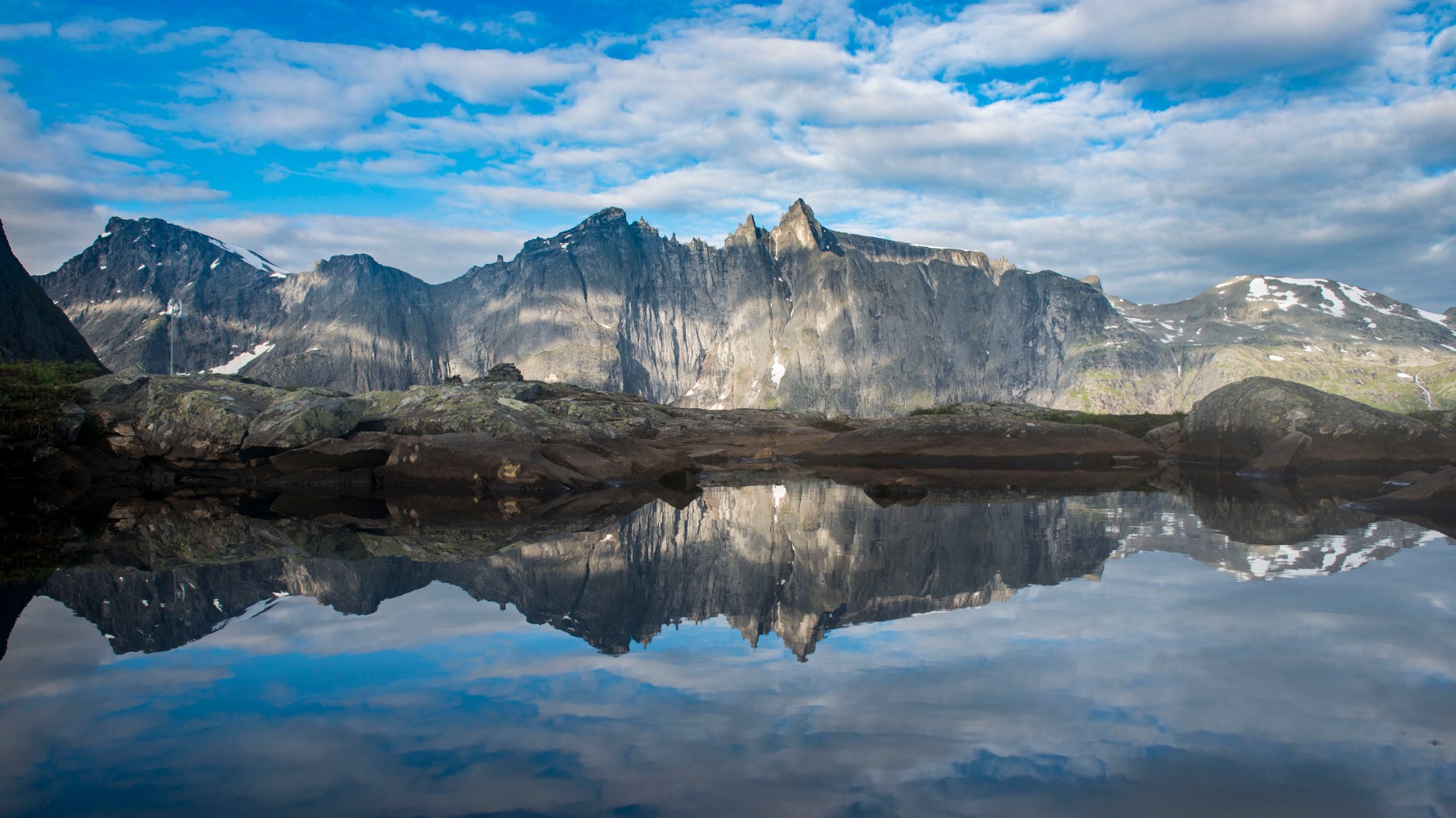 Today me and Jan decided to walk Romsdalseggen and then find a spot to film the sunrise over the Troll wall. Jan packed up 25 kg of gear and set of on a trip that would take 10 hours and 16 km to complete. To be able to film the sunrise, we had to sleep over in the mountain and get up at 4 o’clock in the morning to set up the gear. It’s hard doing this and staying focused after the 10 hour hike the day before, but the reward was priceless. When we woke up it seemed that our effort had been in vain, the clouds was blocking out the sun. To our luck the clouds started to break up and the light started to play along the mountain side like waves. What an amazing experience! The timelaps that Jan made can be seen here.