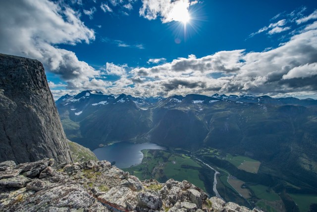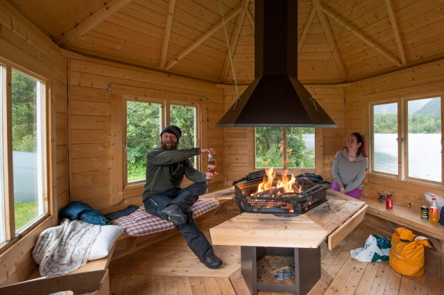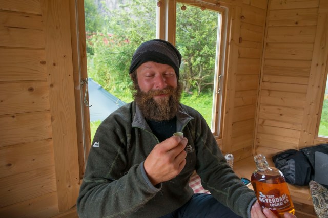 After dragging our kayaks by road for a day, we found a nice camp spot near the lake to stay for some days. People are really nice around her and they let us use their barbecue hut while we stayed there. We also took time to hike up the mountain Goksøyra, so that Anders could have a jump again.