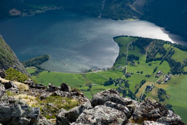 | The view from the topp of Goksøyra. Our camp spot is in the center of the Picture. |