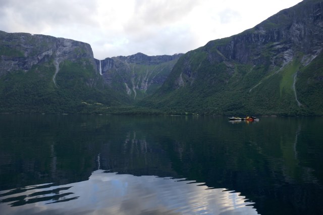 After a few days of relaxing at the start of Eikesdalen lake, we set sail for the end. The lake is about 20 km long and it took us only a few hours to paddle the distance. This will be the last time we use our kayaks on this trip. From now on it’s only walking or skiing that will be done for the remainder of the trip. As fitting end to our paddling journey, a couple of friends did a BASE jump of Katthammeren when we reached the end of the lake.