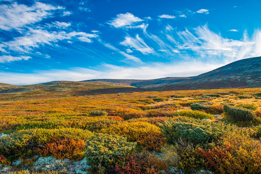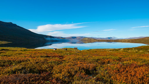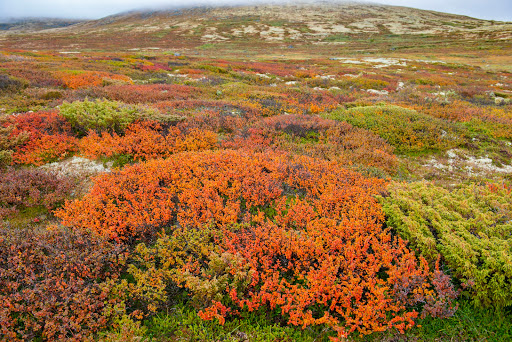 As Norwegians, Jan and Anders have seen or knows how different the Norwegian landscape can be. But even they were surprised by the landscape we now were entering. Knutshø conservation area is a mystical highland with seters (summer mountain pastures) situated throughout the area. The landscape is covered in turquoise reindeer moss and almost no high growing vegetation. Some places it seems that the reindeer moss covers 70 % of the landscape, making the autumn colours in the rest of the low growing vegetation stand out crisp and brightly. The whole time we have this strange feeling of not being in Norway, this is how mystical and surprising this place is, even for a Norwegian!