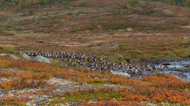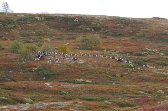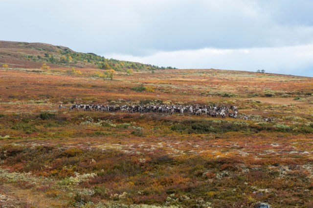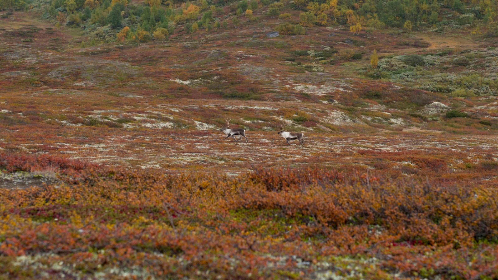 Norway still has surprises for us and this time it’s a national park that we did not know about. Not as mystical and special as Knutshø, but still it’s an amazing place with many of the same features as Knutshø. We have not seen any wild reindeer for the last weeks that we have been walking, even though the reindeer should be thriving in these lands. Wild reindeer are very shy, so it’s not really that surprising. But to our surprise, we woke up to a herd of about 100 reindeer 50 meters from our tent. They left in a hurry when they caught glimpses of us, but we saw them again later that day and could gaze at them for an hour.