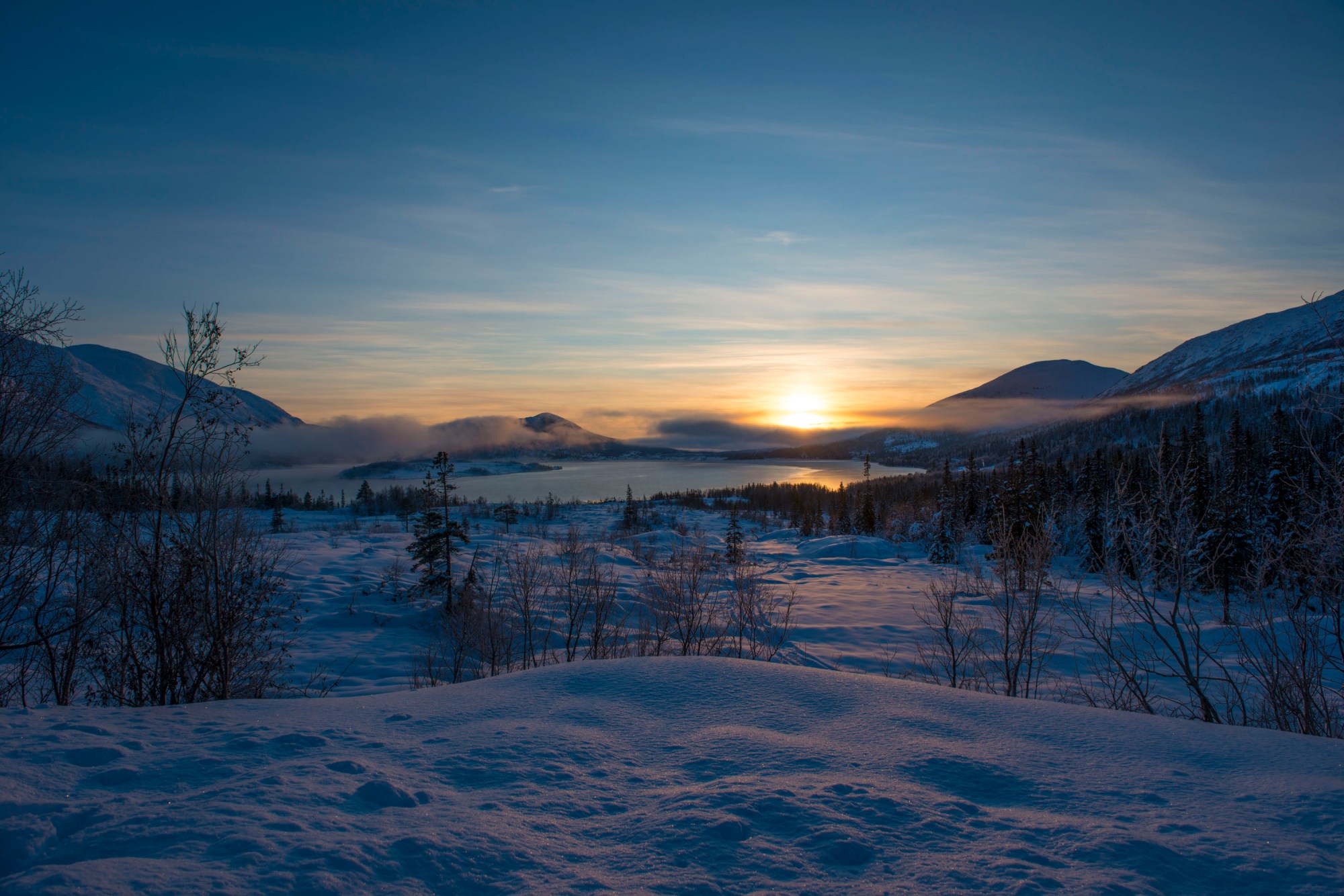 Just after we passed in to the north of Norway, the weather cleared up, bringing with it really cold temperatures. Each evening and night the temperature plummets to -20°C. When it gets this cold everything starts acting weird, all the equipment and clothing starts getting brittle and you have to take care to not break anything. Since we only have summer and autumn equipment, these temperatures can be dangerous. Luckily, we have the experience and knowledge to manage this without too many problems. On the bright side, you get some amazing sunsets and every bush and tree is covered in ice crystals. This is truly winter wonderland!