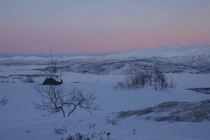 We have been skiing for a couple of weeks now and been battling bad snow conditions. In the forest the snow is powder and over a meter thick, making progress really slow. But we are gradually making our way north. Christmas was celebrated in the tent, without a Christmas tree, since there are no pine trees around here. We are pushing to reach a serviced mountain cabin called “Umbukta Fjellstue” and celebrating new years eve there. The days are now gradually getting longer since the winter solstice and we are starting to see the sun on the mountain peaks around us. So we have many things to look forward to 😀