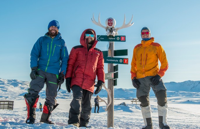 The day after the amazing aurora, we originally where planning on going to the next hut (Oallavagge). But just as we were leaving, a guy came skiing towards Cunojávri. We greeted him and started talking about what he and we were doing in the area. To our surprize he (Jurgen) was doing the same thing as us, going across the length of Norway and only on the Norwegian side of the border! Since we were going in opposing directions, we used over two hours to exchange information about the routes that we had done. This way we all could benefit from first-hand information about the best route to take. Since we all were of the same breed when it comes to the outdoors, we all decided to stay one more night at Cunojávri. It was really nice talking to a fellow comrade with the same interests. The next day we said farewell to both him and the Belgian tour group that we have been going along with for the last three days. We hope everyone enjoyed their stay at this wonderful place!