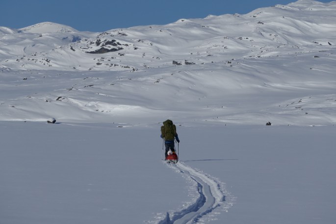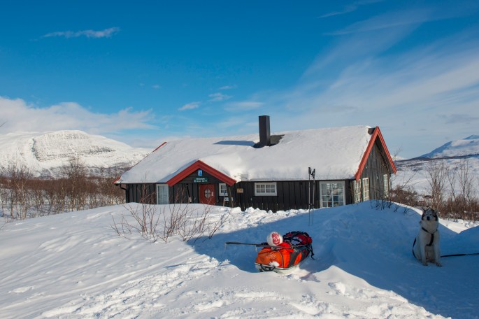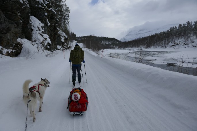 The last days have been going ok, despite that we have to plow our way through the fresh snow that has fallen the last days. The biggest problem that has happened is that one of the ski bindings of Jan’s skis suffered a catastrophic failure, it ripped right of the ski itself! The probable cause is just all the hardship the equipment has been through the last couple of months. When such a thing happens out in the wilderness, it is good to have some duct tape with you. We just taped the boot to the skis and carried on to the nearest place we could find people. As luck would have it we met a friendly family at a cabin, just asking for the best way to get to the nearest town to fix our problem, and they just took us home with them! We stayed at their home for two nights and could use their car to drive into the town of Setermoen, where there was a sports shop that could help us. People in the north are just so super friendly and helpful it’s beyond belief.