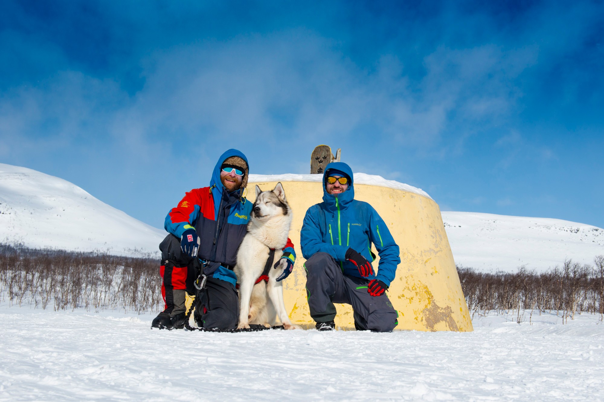 Another week and another milestone achievement we can be proud of. We are now so far north tjat we are at the border junction between both Finland, Sweden and Norway. Yesterday we checked in at the cabin Goldahytta, which is situated 3 km from where the borders meet. A perfect place to take a day of and walk over to the “Three country Cairn” that officially marks the intersection of the three borders. The cairn is rather boring, just a concrete block that has been painted yellow. For something that represents the essence of both Finland, Sweden and Norway, they should have done something more. Placing a sauna, an IKEA chair and a lump of brown cheese would do a perfect representation of these three countries.