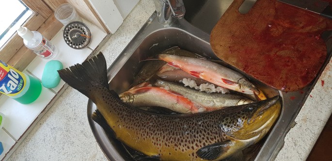 In these parts of Norway there are vast distances of terrain and nature without any people at all. But in between you will find small places where people live all by themselves. One of these places is Mollisjok. No electricity or connection to the main roads, they live a nice and quite life. They offer shelter and food for all people who go around in this area, and they are very friendly. We booked a cabin for a few days here, relaxing and enjoying life. The owner uses the nature to the fullest and in winter he is out every day ice fishing, giving anyone staying there a possibility to eat a dinner that is fresher than fresh!