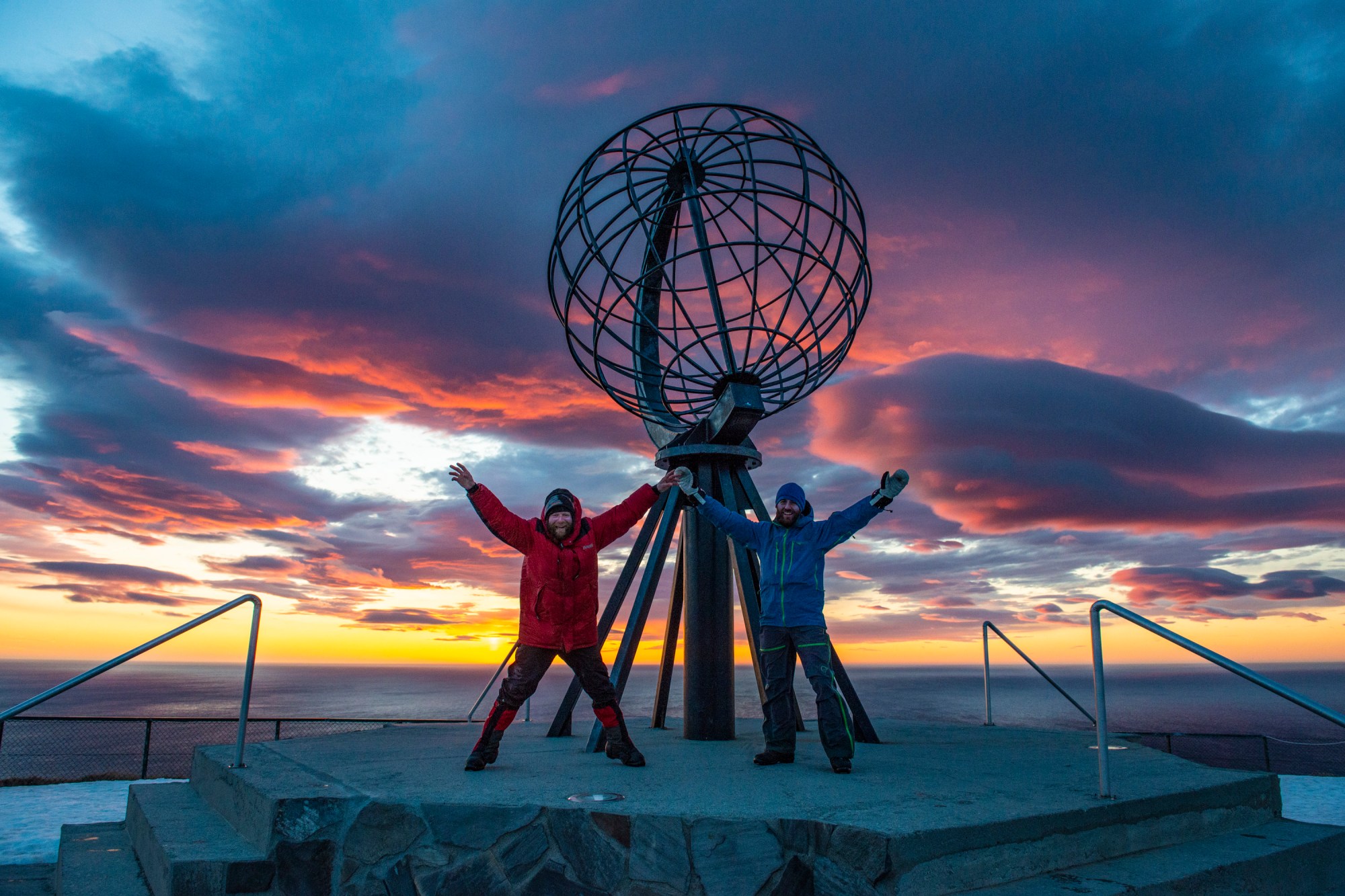 We are finally here! Nordkapp! The northernmost point of Noraway and also the whole of mainland Europe. To get here, we first had to walk the 7 kilometre long underwater tunnel to Magerøya island. This was kind of a new milestone achievement, since this was the lowest we have ever been on the trip, 212 meters under the sea! Not the most exiting hike we have done, but still a fun thing to have done. The day after we skied the last 35 kilometres out to the Nordkapp plateau. The sun was shining, but it was very windy out here. I even had to be tethered as not to be blown away! I would not like being sent out to sea again, especially not in the cold Barents sea! Happily I stayed securely fastened and we could all enjoy a magnificent sunset.