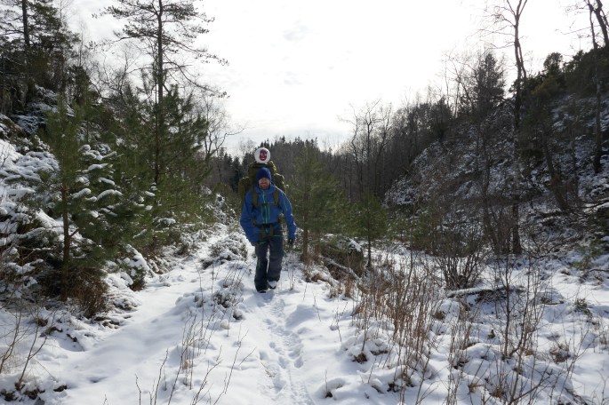 Through my vast knowledge of living outdoors (practically on my own), I can learn these apes to navigate through all the terrain you can find here in Norway. Until now there has not been much snow, but as we go further inland the amount of snow increased steadily.